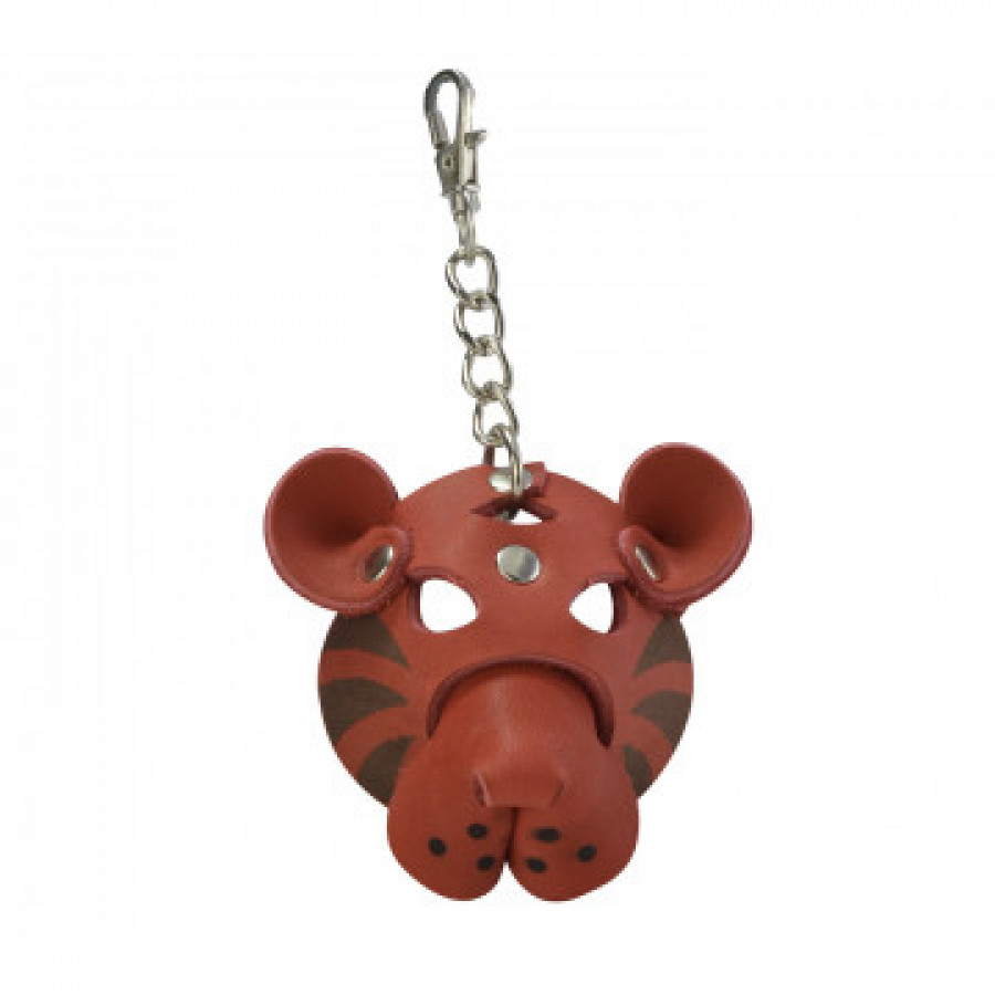 Брелок изготовлен из натуральной кожи рыжего цвета, имеет карабин.