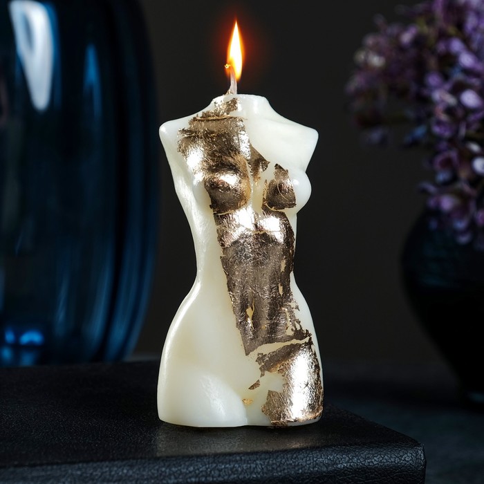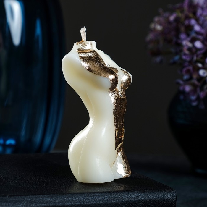 Фигурная свеча "Женское тело №1" молочная с поталью 9см