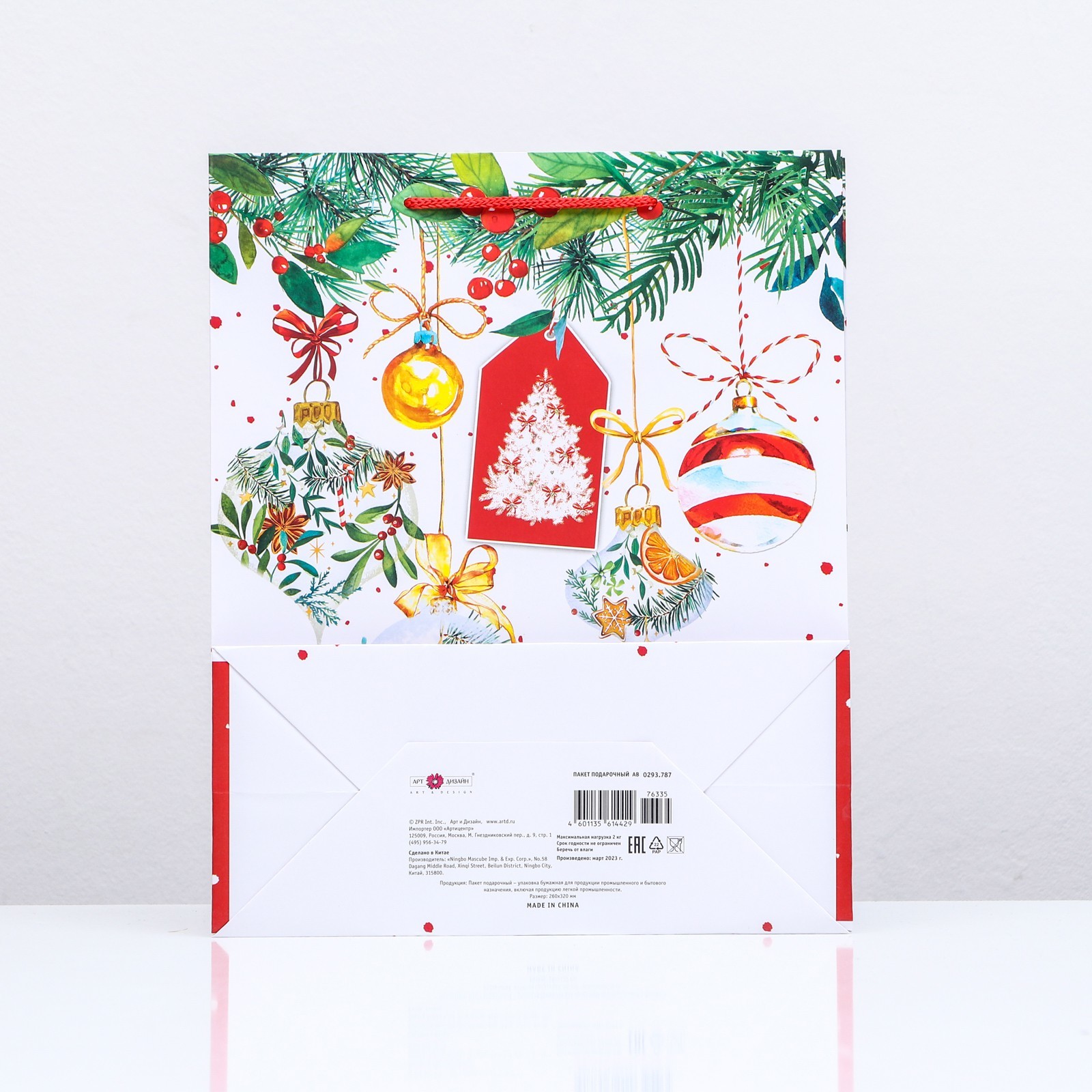 Пакет прямоугольной формы изготовлен из ламинированной бумаги.