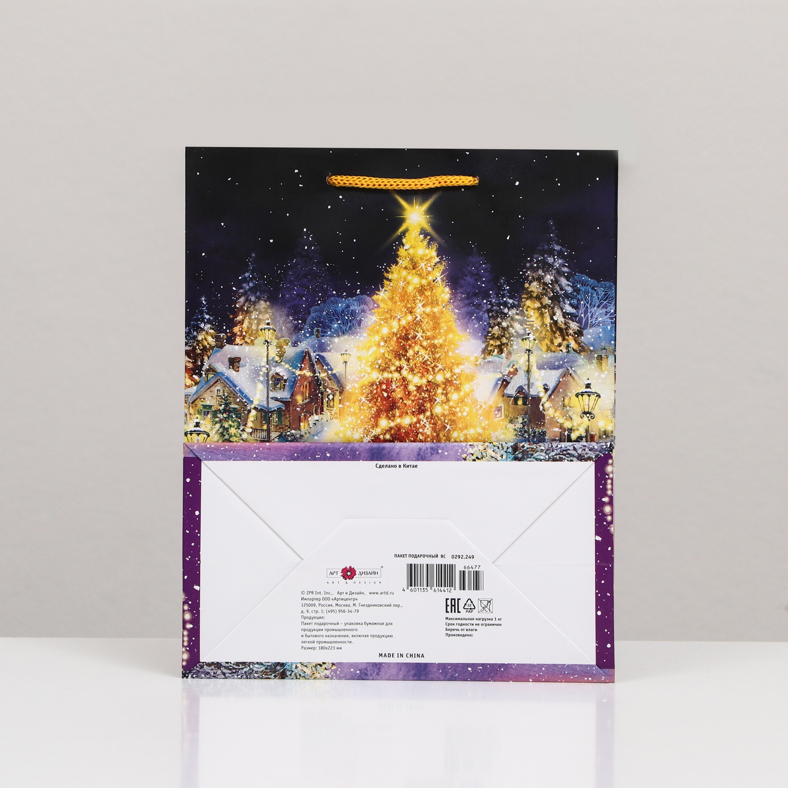 Пакет прямоугольной формы изготовлен из ламинированной бумаги.