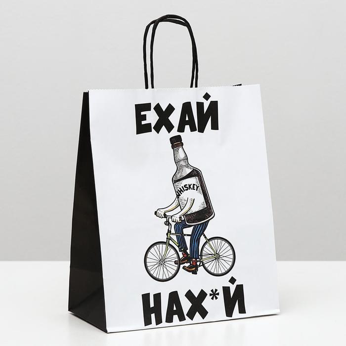 Пакет крафт с приколами "Ехай", 22 х 12 х 27 см