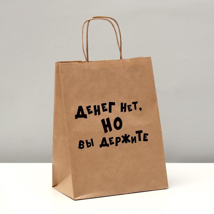 Пакет подарочный «Денег нет, но вы держите», крафт, 24 х 10 х 30 см