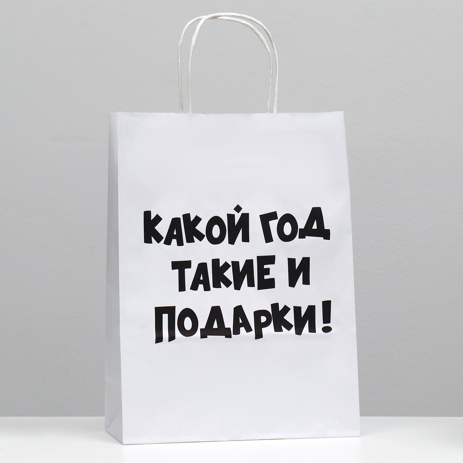 Пакет подарочный с приколами, крафт «Какой год такие и подарки», белый, 24 х 10,5 х 32 см