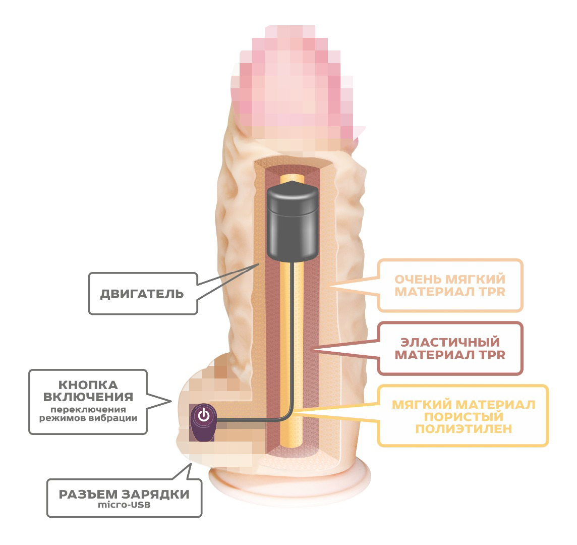 Специально для данной линейки был разработан и протестирован в условиях производства 12-скоростной механизм управления вибрацией на основе микросхем, совмещенный с внутренним заряжаемым аккумулятором. Теперь потребителю больше не нужно постоянно «бегать» в магазин за новыми батарейками. Достаточно всего лишь зарядить устройство от телефонной зарядки или компьютера через специальный USB кабель (уже в комплекте!)