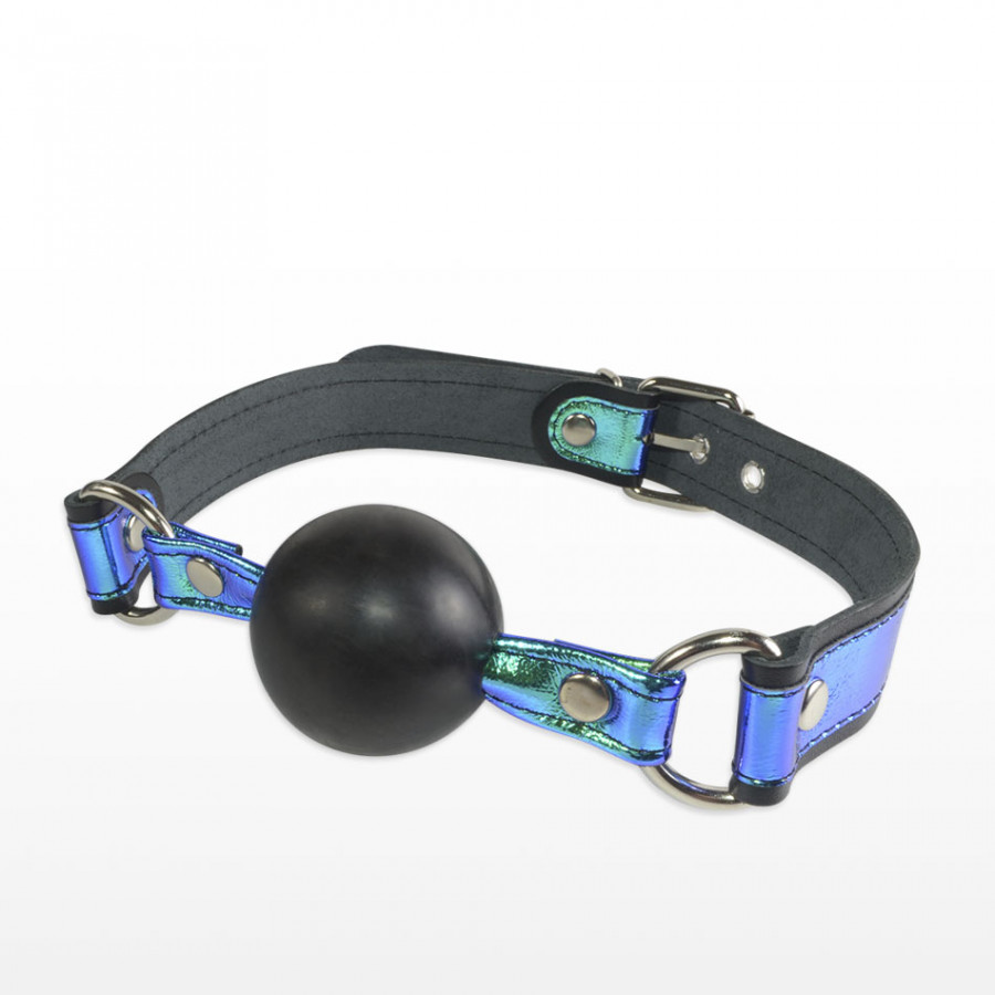 Эффектный девайс от Ситабелла в виде сферического кляпа с яркими ремешками из натуральной высококачественной кожи чёрного цвета, сделает ролевые игры особенно страстными и запоминающимися. Ремешки кляпа декорированы голографическими вставками синего цвета, который отливает изумрудным, салатным и бирюзовыми оттенками. Кляп «хамелеон», сделает Ваш образ неповторимым и сексуальным, ведь так красиво Вам ещё не закрывали рот! Кляп-шар не способен повредить зубы и прост в гигиеническом уходе, достаточно промыть теплой водой с мыльным раствором. Диаметр шара 4,5 см, длина ремешков 57 см, ширина 2,5 см. Легко зафиксировать девайс на шее и отрегулировать размер можно при помощи пряжки. Вся используемая фурнитура имеет хромированное покрытие.