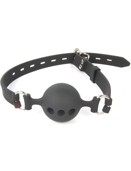 Сам кляп-шар изготовлен из силикона, приятного на ощупь, со специальными отверстиями, пропускающими воздух.