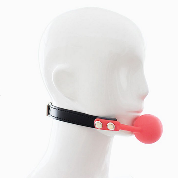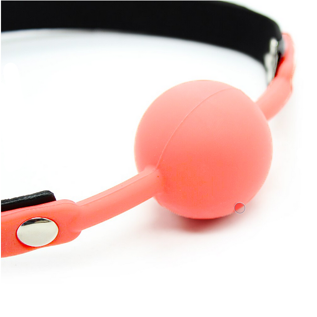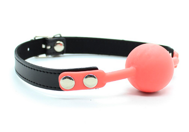 Силиконовый кляп с розовый шаром и с черным ремешком