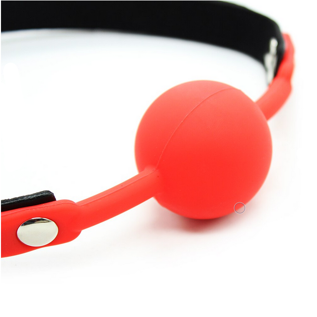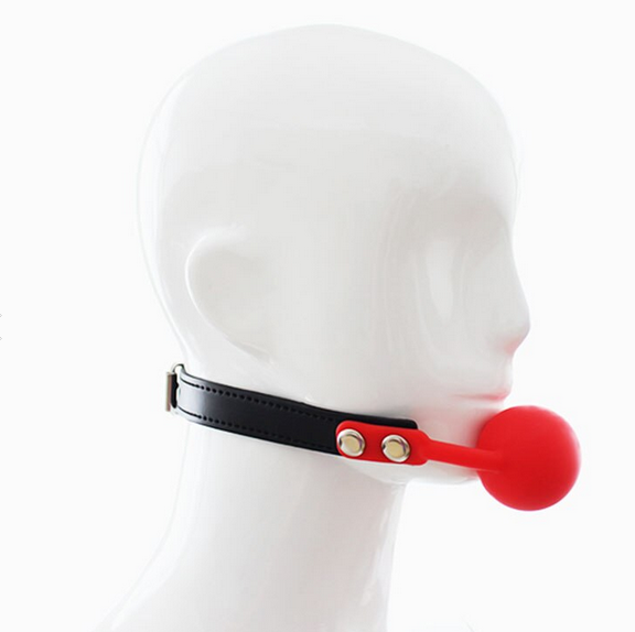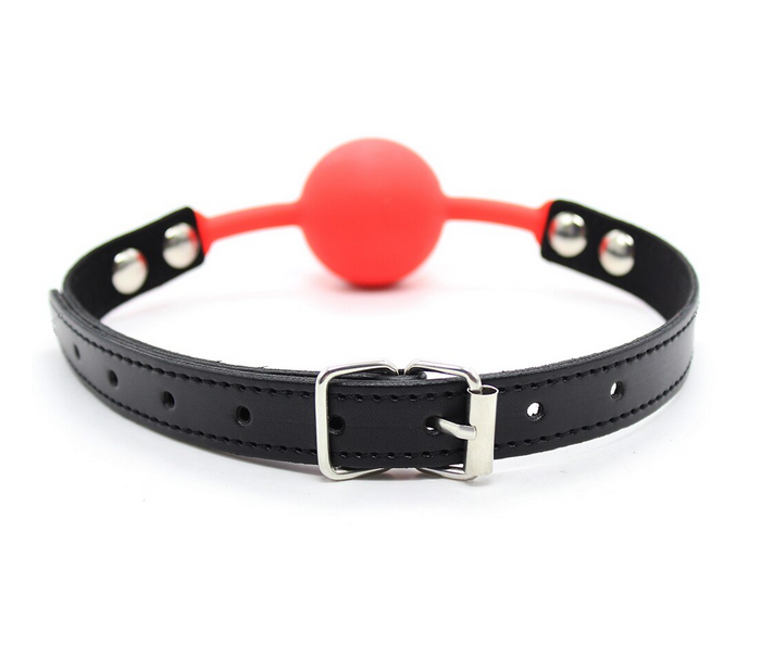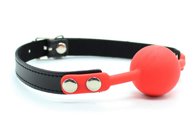 Силиконовый кляп с красным шаром и с черным ремешком