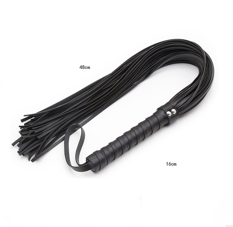 Плеть флоггер из эко-кожи черная общая длина 64см длина хлыстов 48см
