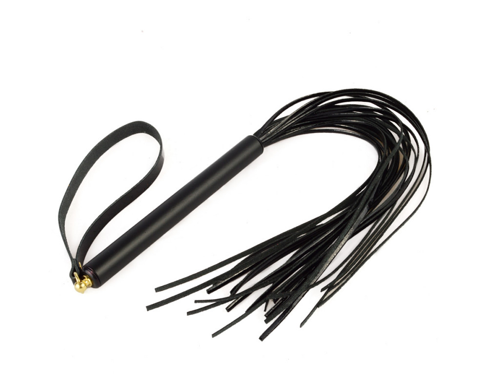 Небольшая плеть с хвостом из тонких 3-х мм лент искусственной лаковой кожи. Металлическая рукоять цилиндрической формы имеет диаметр 1,6 см, длину – 15 см. Рукоять может быть, как матовой, так и глянцевой, на усмотрение производителя. Общая длина изделия, без ремешка, 47 см. Цвет черный.