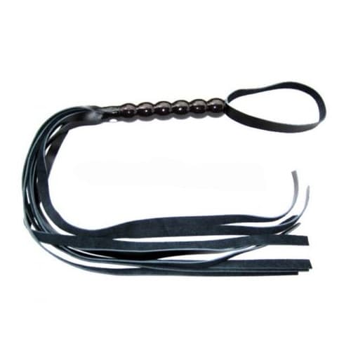 Черная многохвостовая плетка с удобной ручкой в виде шариков. Отлично подойдет для любителей ролевых игр в стиле БДСМ.Размер: общая длина 65 см.Материал: искусственная кожа, пластик