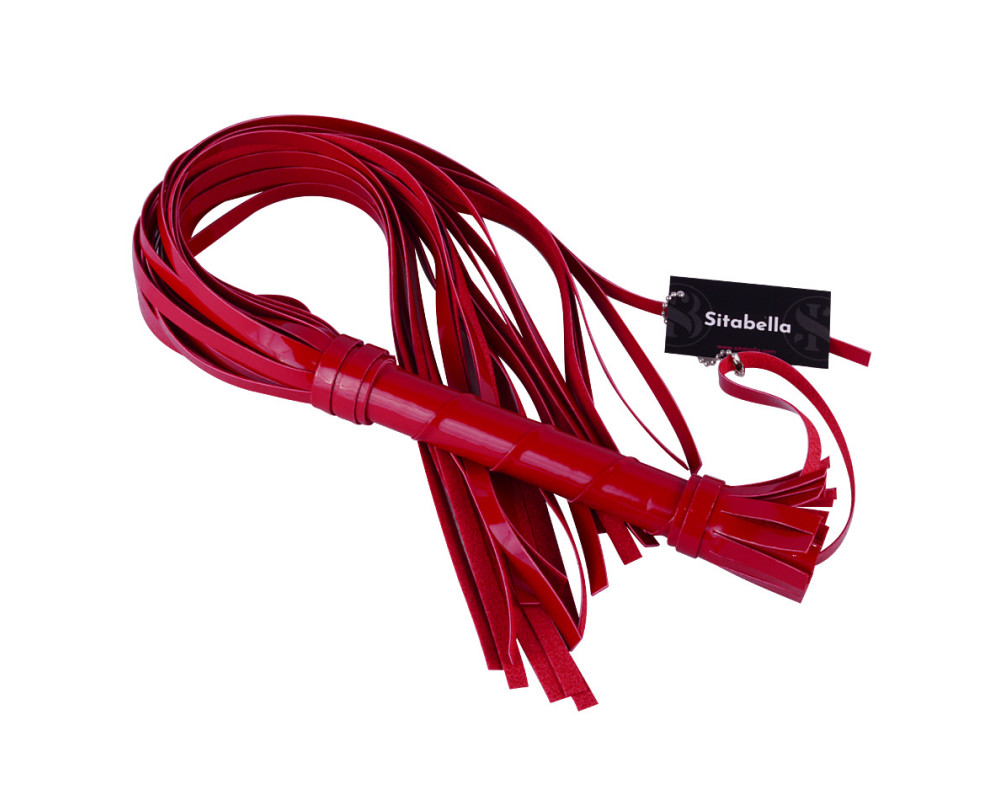 Гладкая лаковая плеть (флогер) изготовлена из искусственной кожи, цвет - красный. Состоит из жёсткой рукояти и ударной части из 24 хвостов. Общая длина плети 65 см. Используется в основном для разогрева (начало флогеляции), Идеально подходит для использования, как мужчиной, так и женщиной.
