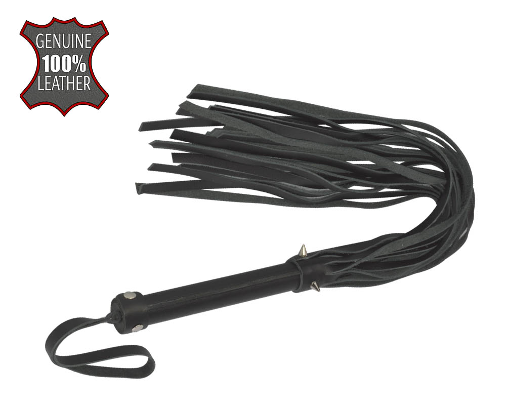 Плеть изготовлена из натуральной кожи и украшена тремя металлическими шипами.