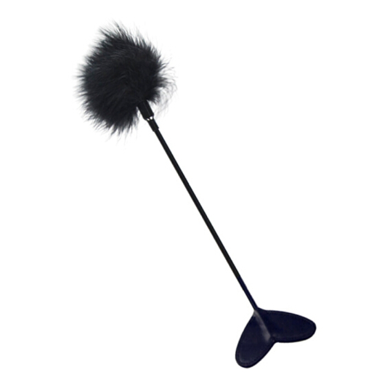 Черный стек с пушком для щекотания 42см из эко-кожи