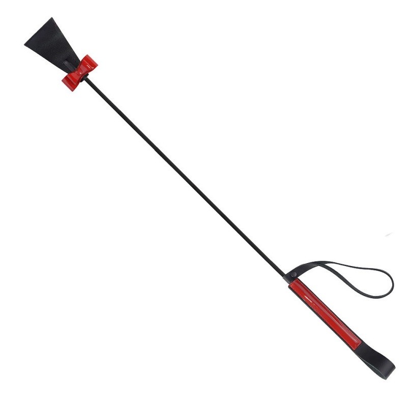 Особое внимание стоит обратить на отделку лаковой кожей. Красный кокетливый бантик на хлопушке и декоративная полоса на ручке, придаёт лаконичному стеку одновременно игривость и некую двусмысленность.