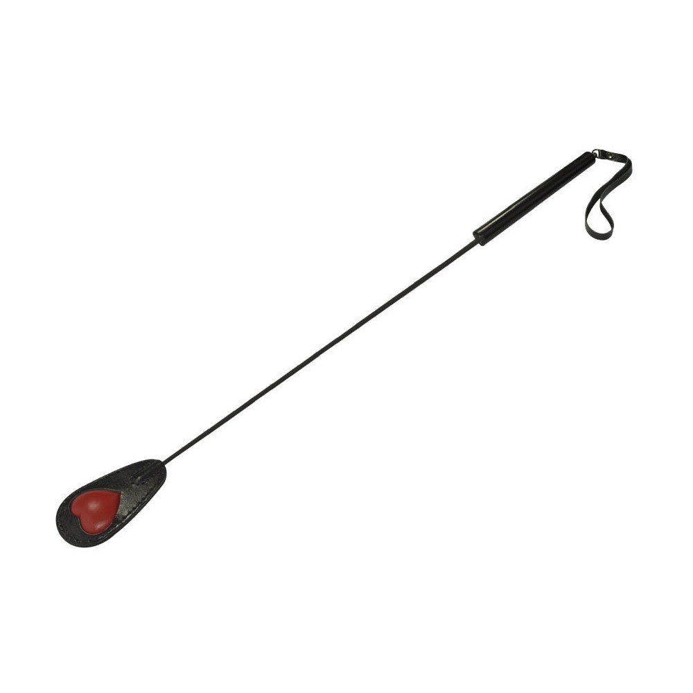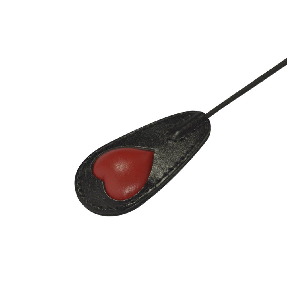Стек состоит из жесткой рукояти, гибкого полимерного хлыста и каплеобразной хлопушки из натуральной кожи. На хлопушке имеется объемное мягкое сердечко.