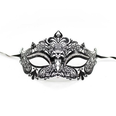 Маска металлическая черного цвета. В венецианском стиле с многочисленными узорами. Украшена стразами.