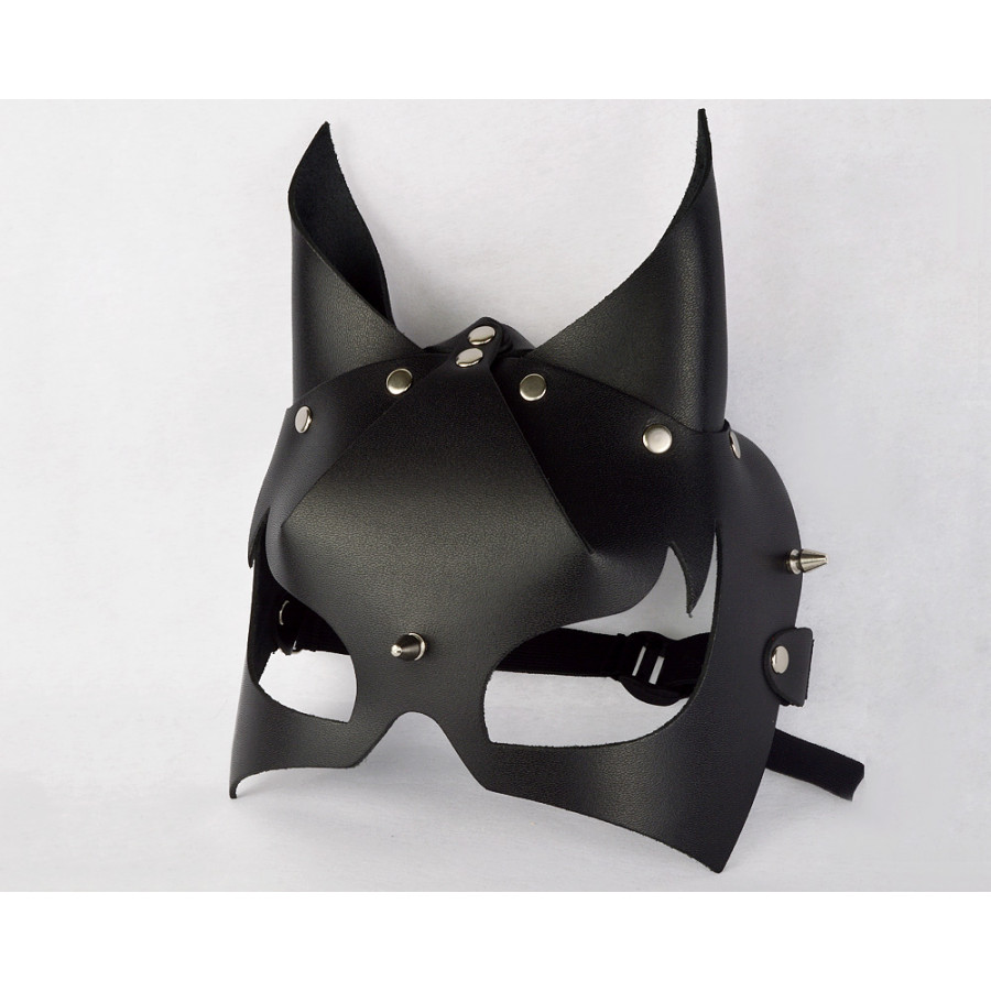 Маска изготовлена из натуральной кожи черного цвета. При помощи резинки и регулятора можно откорректировать размер.