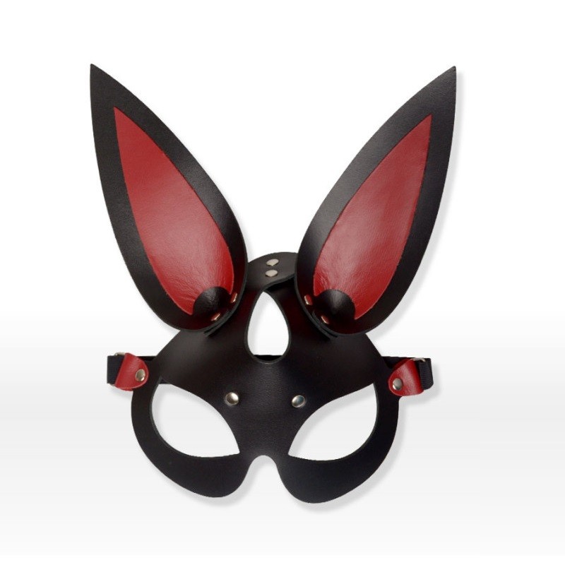 Маска с ушками зайца выполнена из натуральной кожи. Оригинальная выкройка, широкая резинка для фиксации на голове. Ушки прекрасно держат свою форму и не падают.