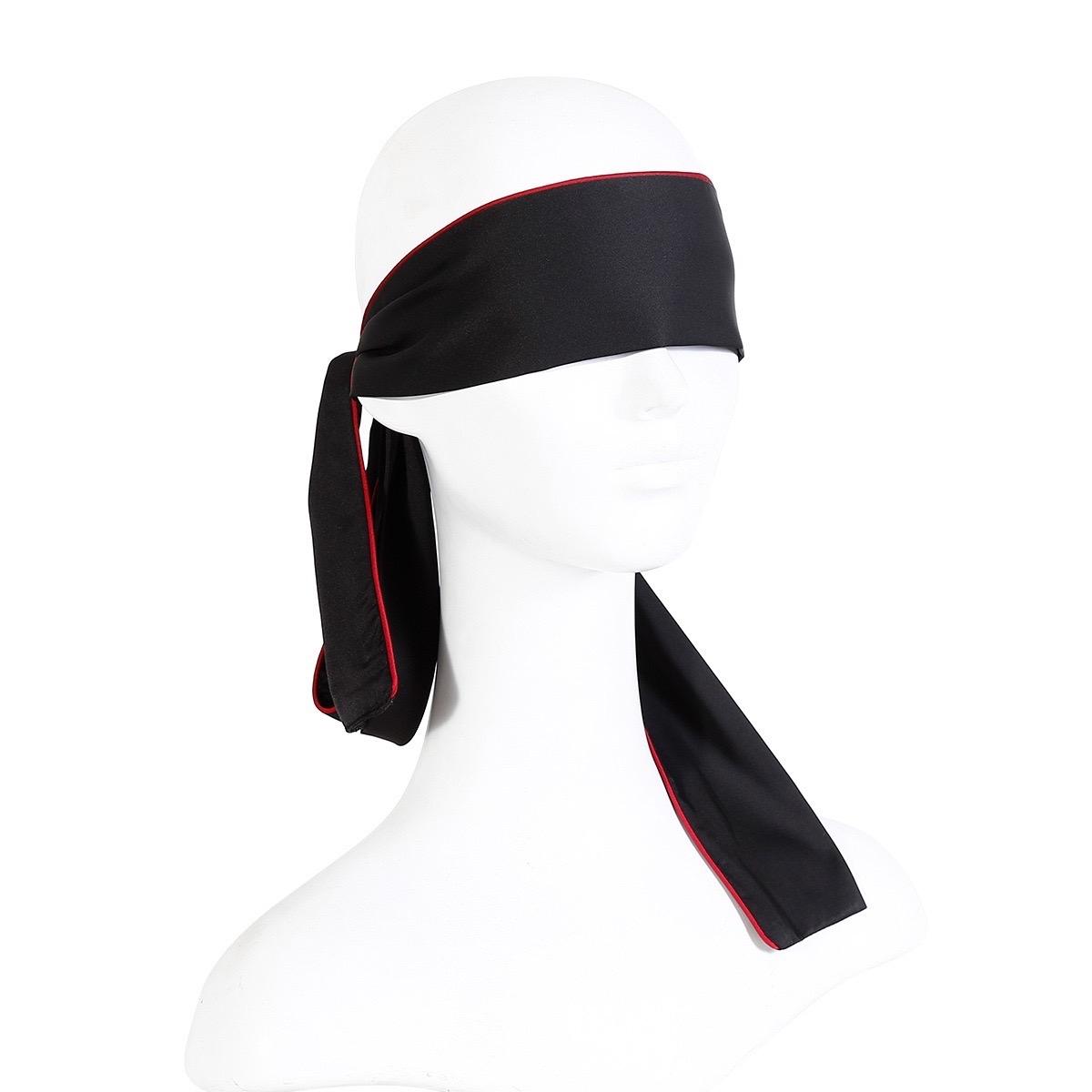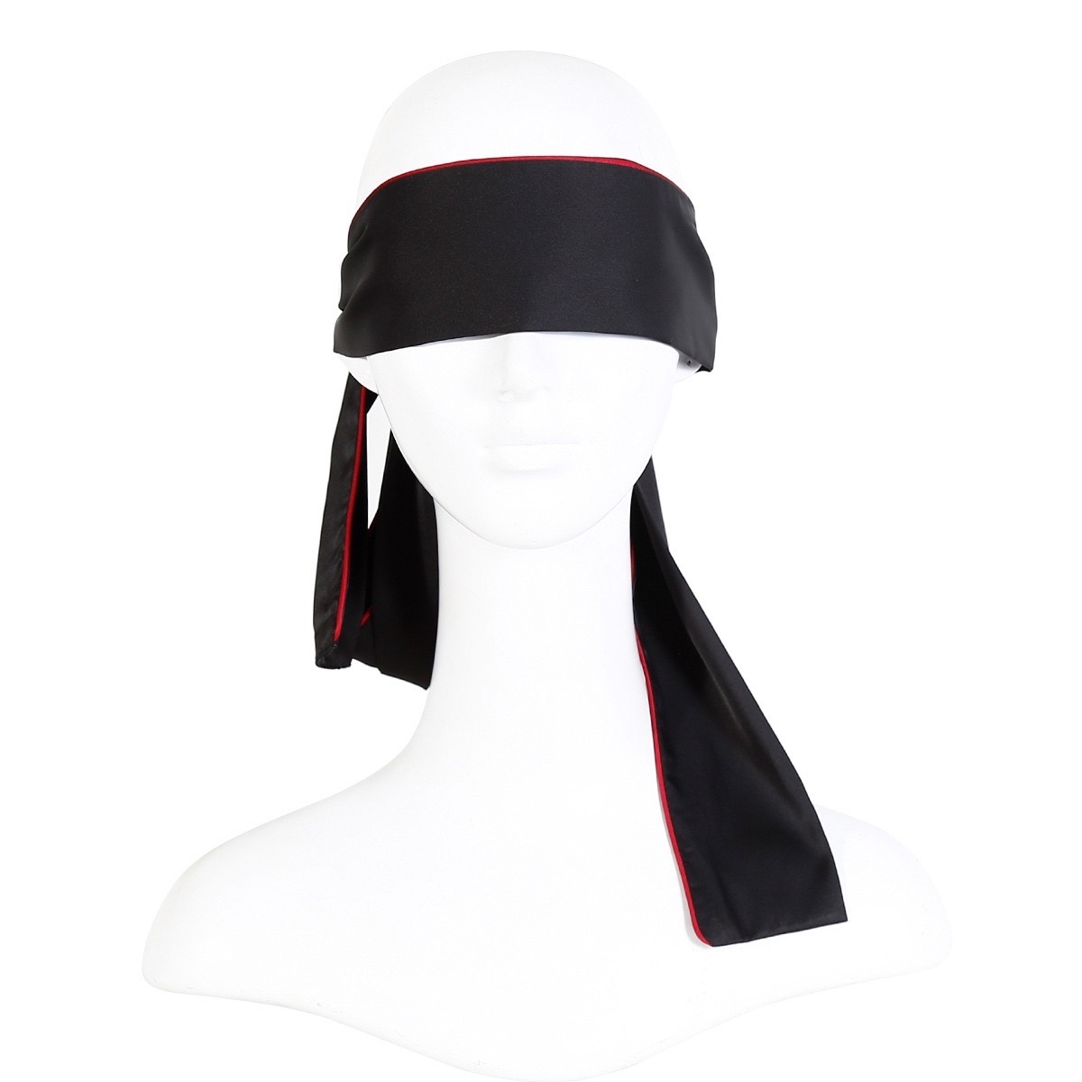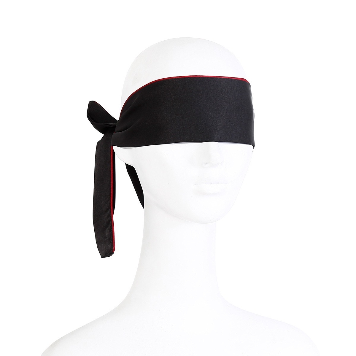 Повязка на глаза черная с красной строчкой