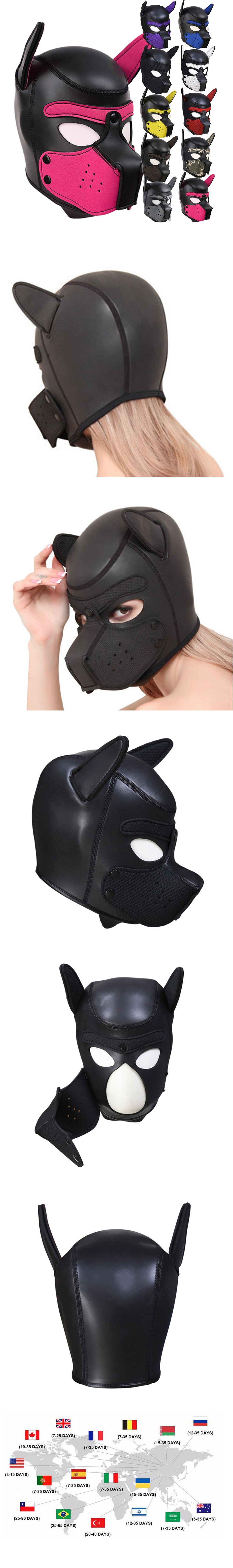 Маска по форме морды собаки с ушами. Выполнена из мягкого, эластичного материала, поэтому легко снимается и надевается. Морда с легкостью отстёгивается и оснащена отверстиями для дыхания. Широкие отверстия для глаз. Благодаря качественным и эластичным материалам маска хорошо сидит на голове.