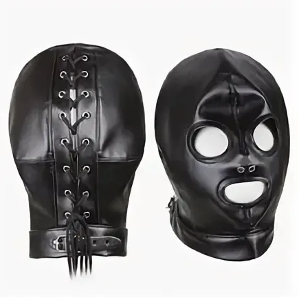 Маска черного цвета выполнена из высококачественной эко-кожи. Размер шлема регулируется шнурками на задней части шлема