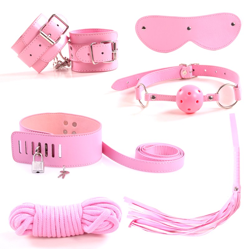 Великолепный набор аксессуаров для любителей БДСМ в розовом цвете.