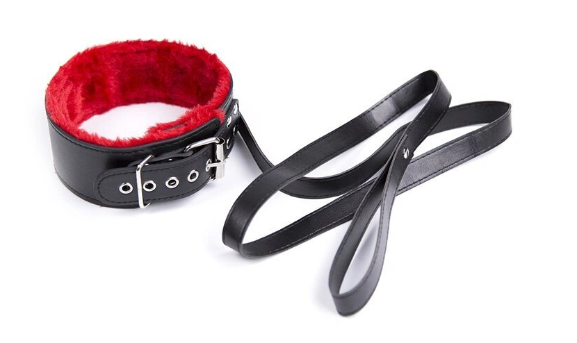 1. Маска 2. Наручники 3. Кандалы 4. Ошейник с поводком 5. Кляп-шарик 6. Плеть 7. Зажимы на соски 8. Веревка
