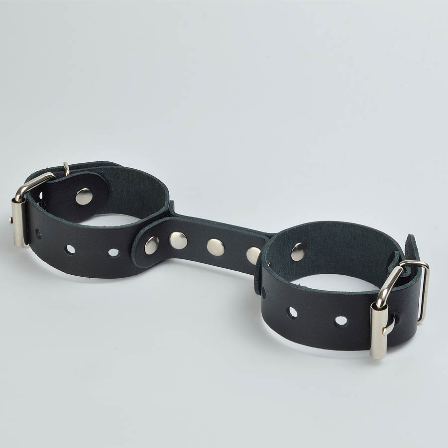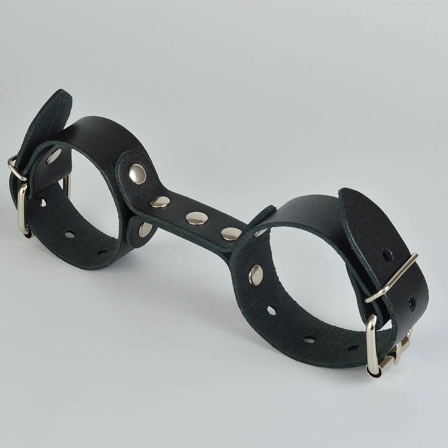 Наручники изготовлены из ременной кожи. Фурнитура никелированная. Максимальный окружность наручников 24 см. Ширина ремешков 2,5 см. Наручники имеют кожаную перемычку, на которой зафиксированы наручники. Длина упаковки 22, ширина 8, высота 4 см. Масса 60 г.