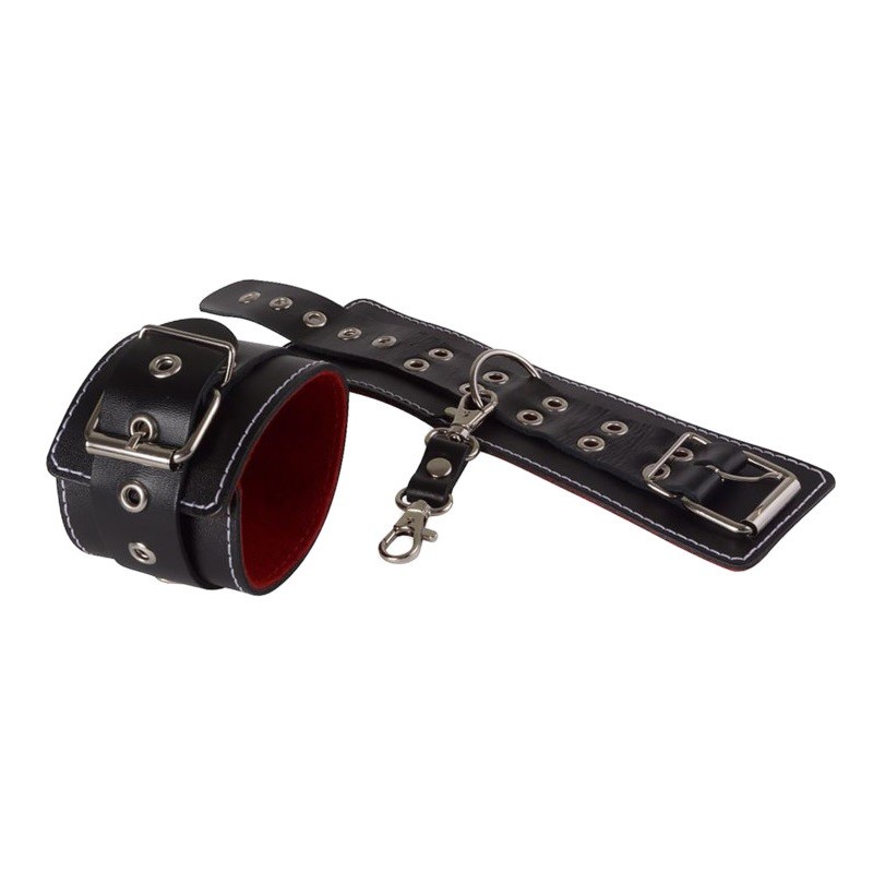 Между слоем основы и подкладой проложена мягкая прокладка. Соединяются между собой коротким ремешком с двумя карабинами на концах.