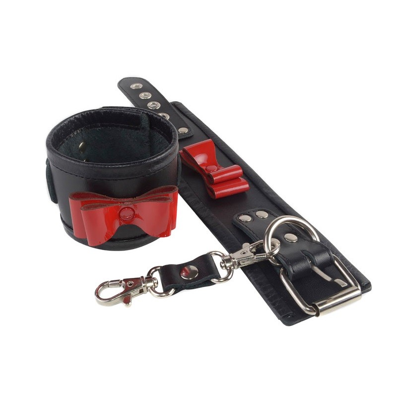 Вся используемая металлическая фурнитура имеет никелевое покрытие. На наручниках располагаются полукольца, для соединения их между собой при помощи двух карабинов, скреплённых кожаным ремешком.