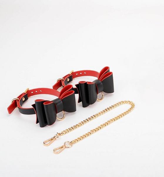 Наручники выполнены из искусственной кожи, которая похожа на натуральную кожу, но при этом легко ухаживать и очень прочная. Черно-красный цвет наручников добавляет им дерзости и эстетичности, а бантик дополняет их стильный образ. Бантик также выполнен из искусственной кожи, что придает ему красивый и элегантный вид.