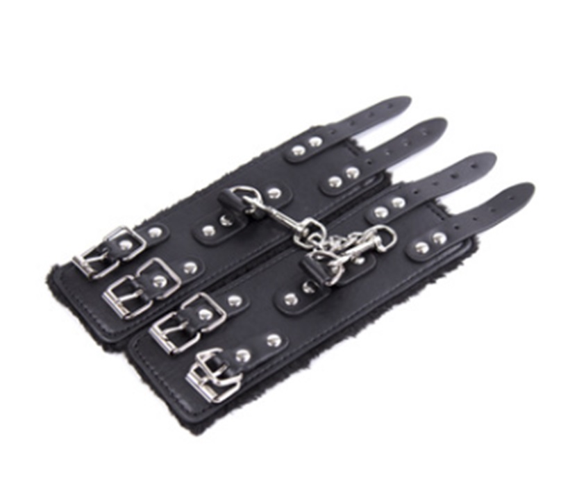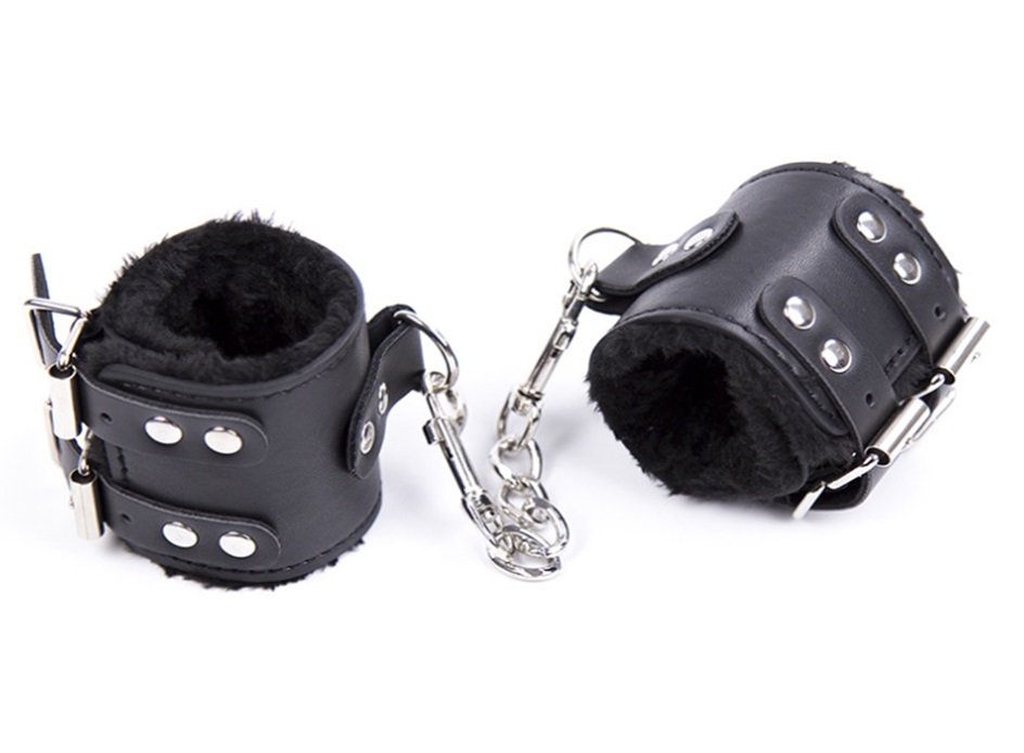 Наручники из эко-кожи с двойным ремешком для более надежной фиксации и межом для мягкости длина манжета 20см