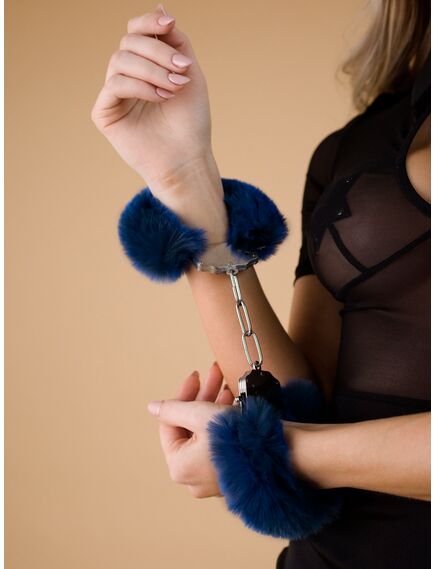 Шикарные наручники с пушистым мехом цвета тихоокеанский синий (Be Mine) [без упаковки]