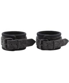 Черные кожаные Оковы, соединенные между собой металлической цепочкой с карабином. Декорированы шипами и застегиваются на клепки. Материал: эко-кожа, металл Цвет: черный