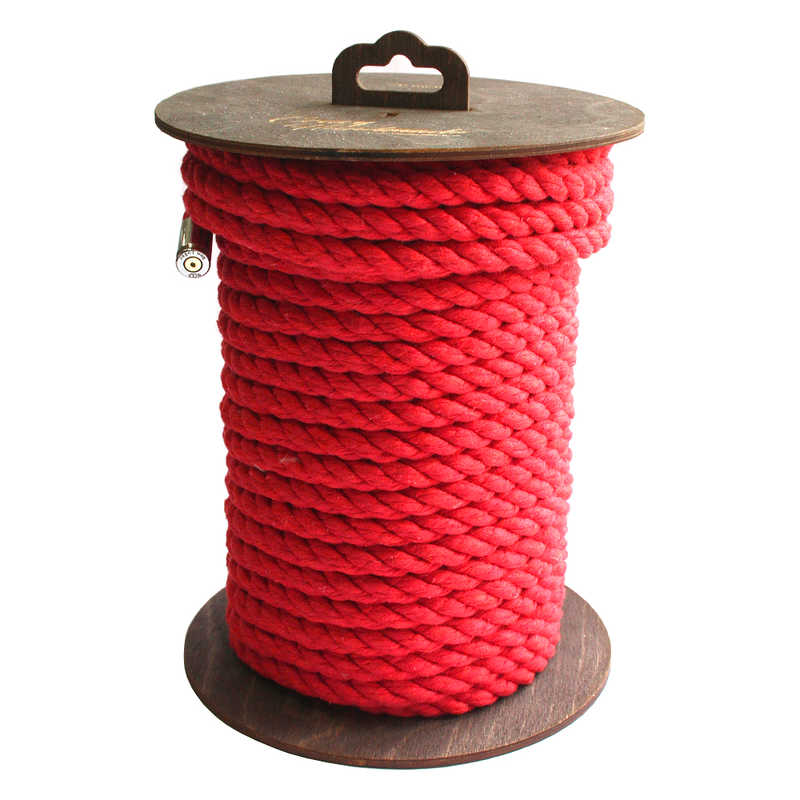 Хлопковая веревка намотана на брендированную деревянную катушку, что удобно для хранения. Такой аксессуар можно поставить даже на полку для красоты. Металлические гильзы на концах помогают избежать распускания, одновременно придавая аксессуару стиля.