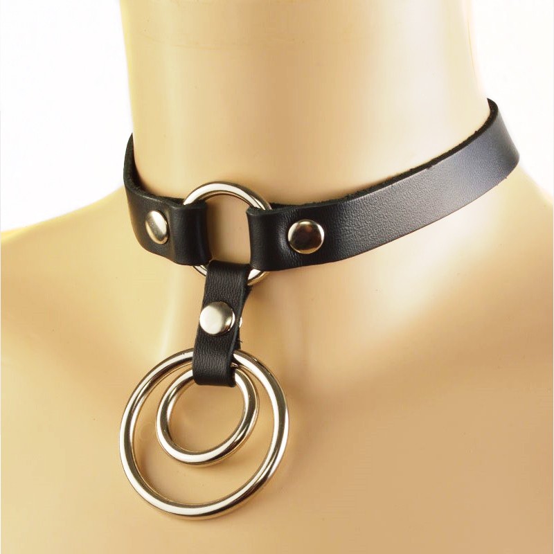 Чокер из натуральной кожи с металлическими кольцами "Соло"