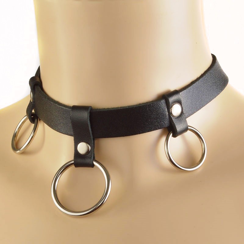 Кожаный чокер с тремя металлическими кольцами на кнопках.