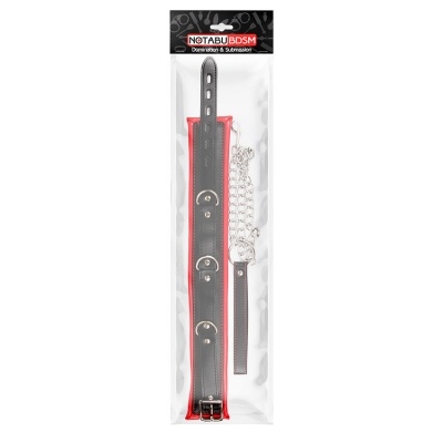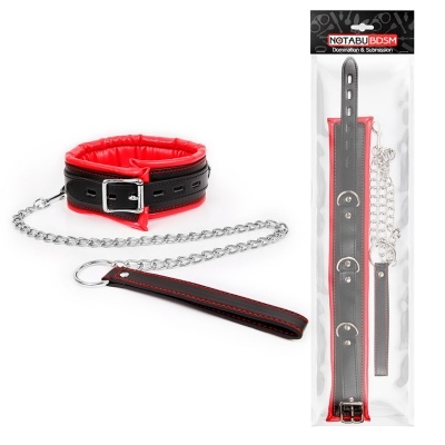 Ошейник с поводком на цепи черно-красный