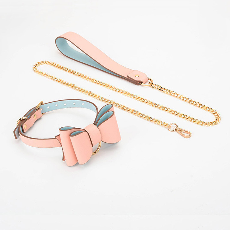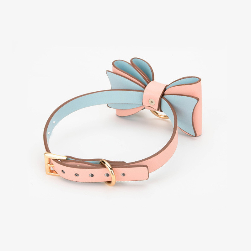 Бантик, выполненный в нежном розово-голубом цвете, прикреплен к ошейнику, что добавляет ему женственности и очарования.