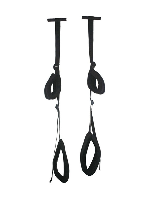 Металлические цилиндрики надо перебросить через дверь и закрыть ее. Портативные качели готовы!