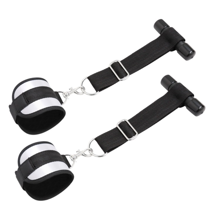 Наручники с креплением на дверь имеют чрезвычайно сексуальный вид. Мягкая подкладка обеспечит комфорт вашему избраннику и не позволит повредить нежную кожу. Манжеты легко регулируются с помощью липучки практически под любой размер. При помощи карабина к манжетам подсоединяется специальный ремень с небольшим цилиндрическим элементом, который перекидывается через дверь и обеспечивает надежную фиксацию, когда дверь закрыта.