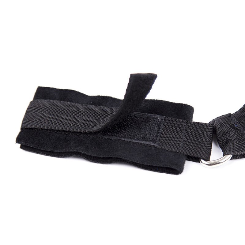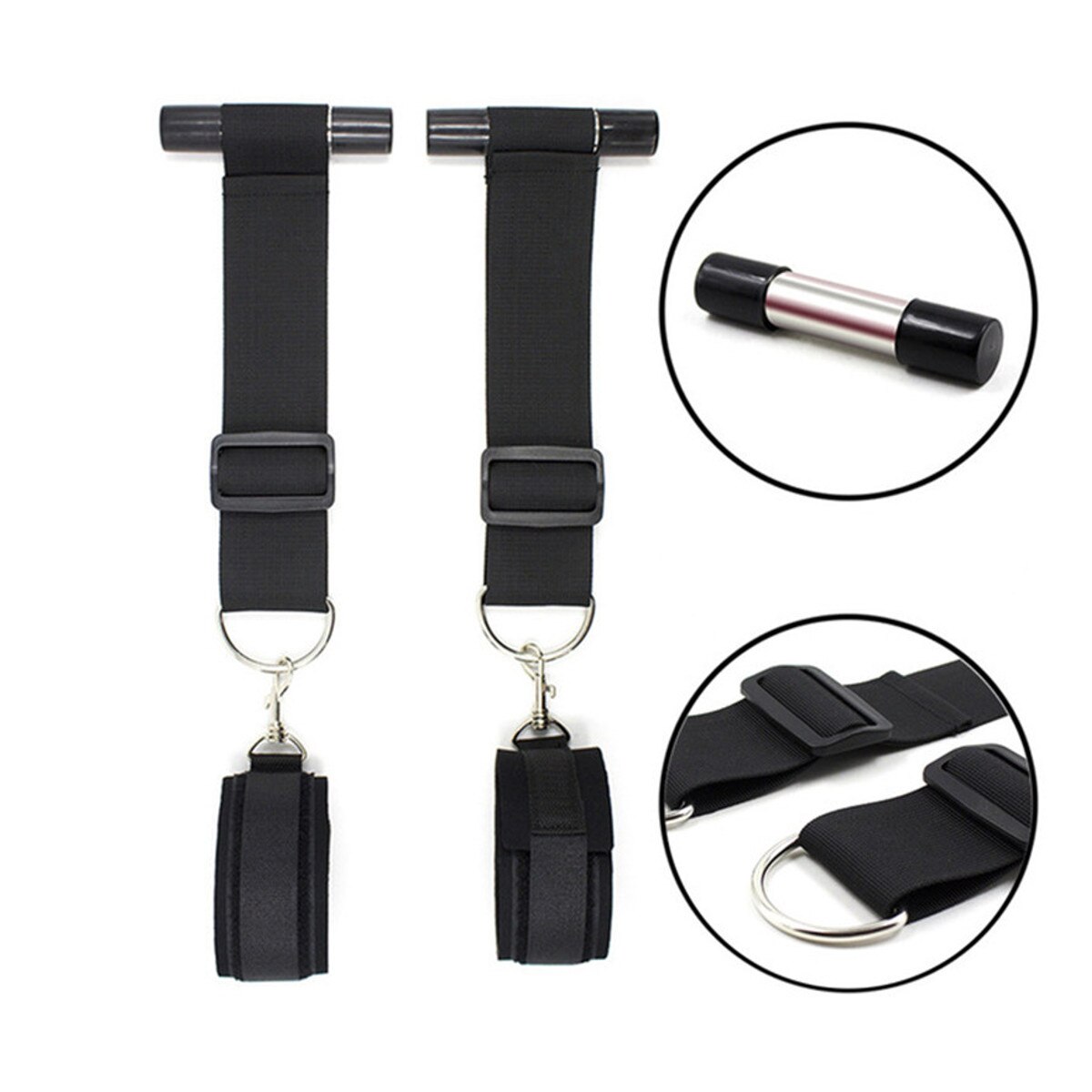 Наручники с креплением на дверь имеют чрезвычайно сексуальный вид. Мягкая подкладка обеспечит комфорт вашему избраннику и не позволит повредить нежную кожу. Манжеты легко регулируются с помощью липучки практически под любой размер. При помощи карабина к манжетам подсоединяется специальный ремень с небольшим цилиндрическим элементом, который перекидывается через дверь и обеспечивает надежную фиксацию, когда дверь закрыта.