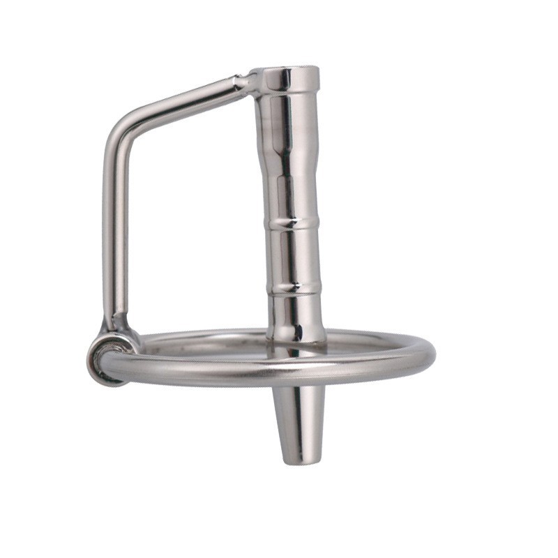 Стальной уретральный стимулятор выполнен в идеально эргономичной форме и подойдет даже новичку в уретральных играх. Гладкий обтекаемый плаг имеет изогнутое основание, оно служит не только для удержания плага в определенном месте, но и как ограничительное кольцо, не позволяющее плагу выскользнуть из рук и проникнуть глубже чем того хотелось бы. Изгиб основания оканчивается шарообразным креплением, к которому прикреплено кольцо. Именно оно позволяет закрепить плаг в уретре, обхватив головку пениса. Эта модель уретрального стимулятора позволяет заниматься сексом не снимая стимулятор.