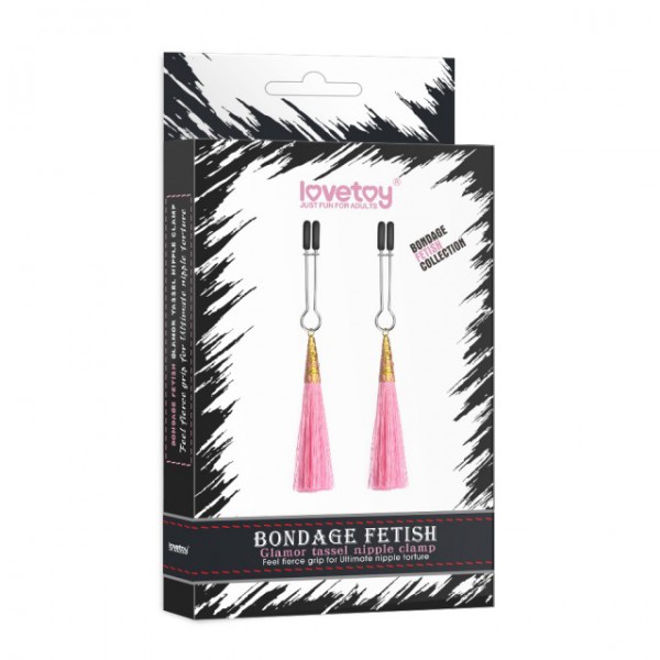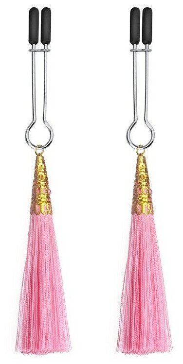 Подвески на соски серебристого цвета с красными кисточками. Зажим на сосок регулируется и снабжен мягкими силиконовыми насадками. Такой аксессуар можно использовать как стимулятор сосков или как дополнение украшающие женский образ.Материал: металл, силиконЦвет розовый