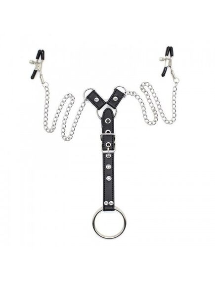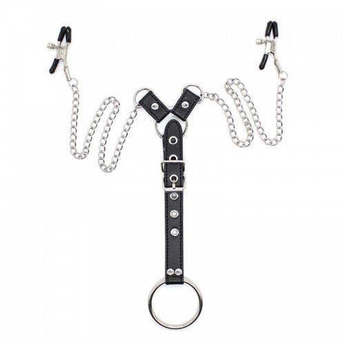 Размеры: длина цепочки с зажимами 40 см, максимальная длина ремешка 25 см; внутренний диаметр кольца 5 см