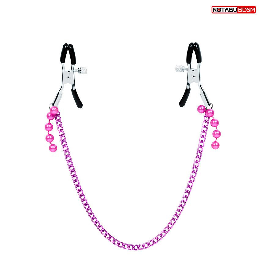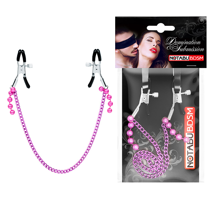 Зажимы соединены лёгкой металлической цепочкой и украшены подвесками из бусин, что даёт эффект утяжеления.