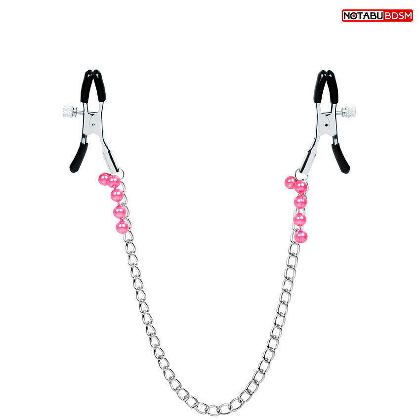 Зажимы соединены лёгкой металлической цепочкой и украшены подвесками из бусин, что даёт эффект утяжеления.