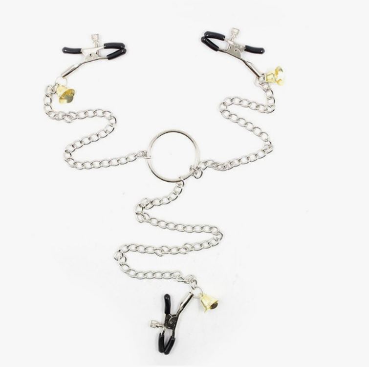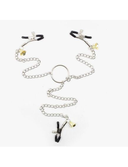 Зажимы на соски и клитор с золотыми колокольчиками