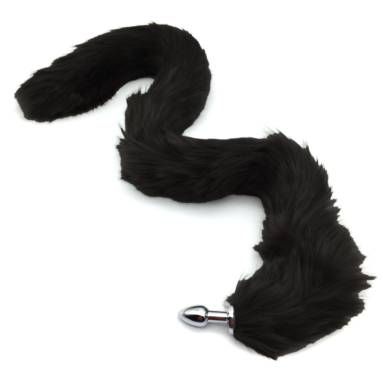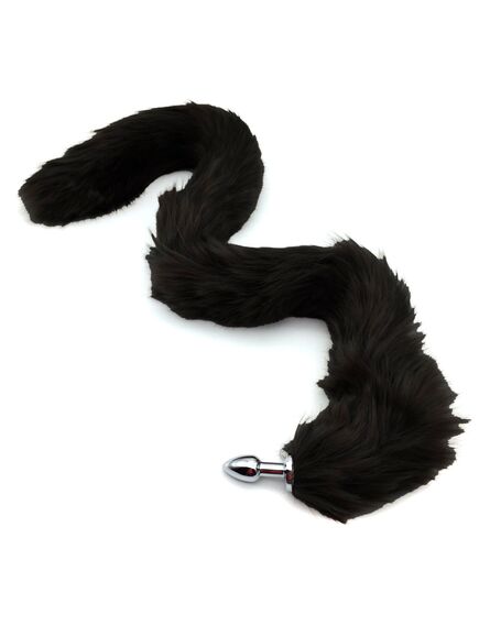 Длинный черный хвост 80см с серебряной пробкой 3.4см